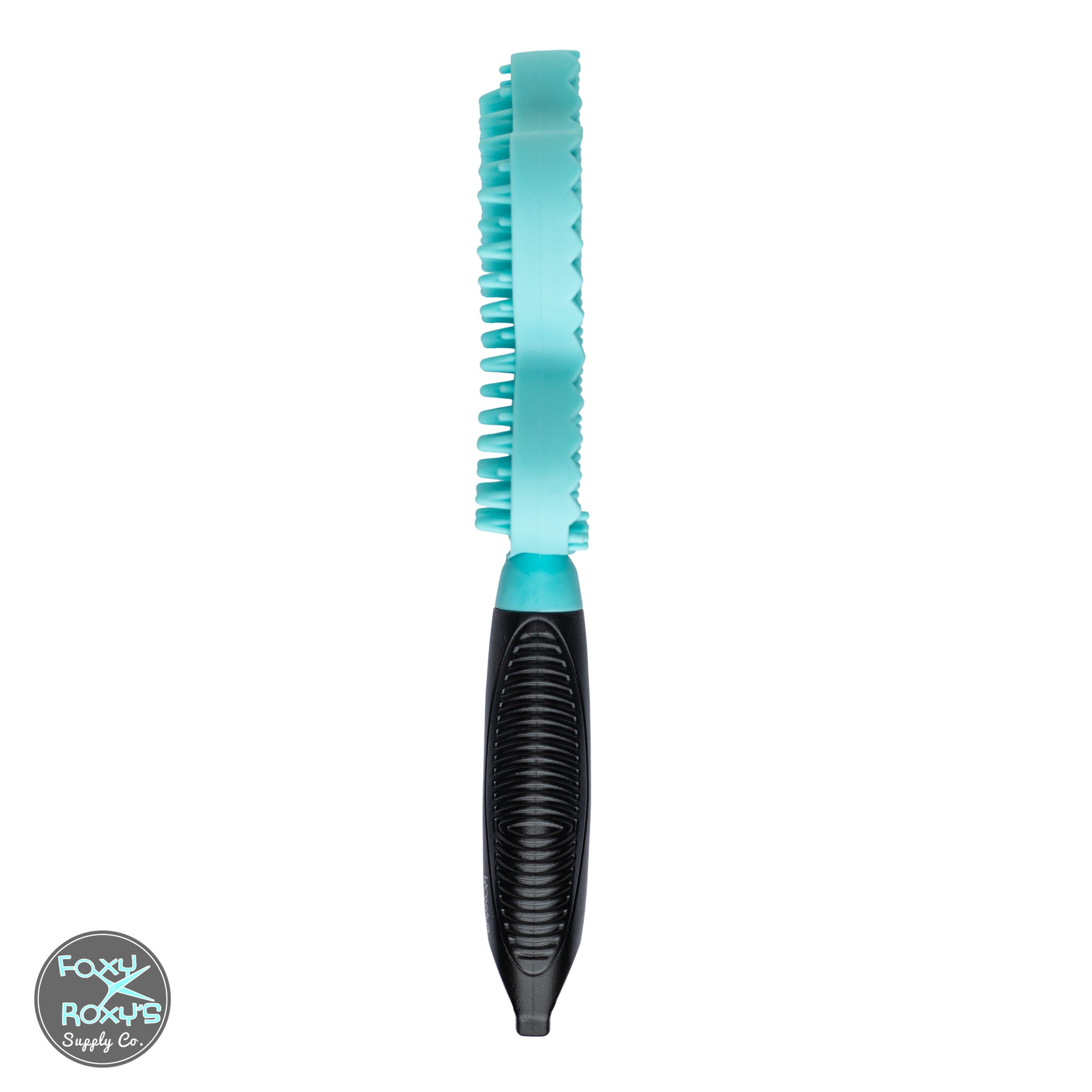 ✨ Turquoise blue rubber de-shedding brush with an easy-grip handle